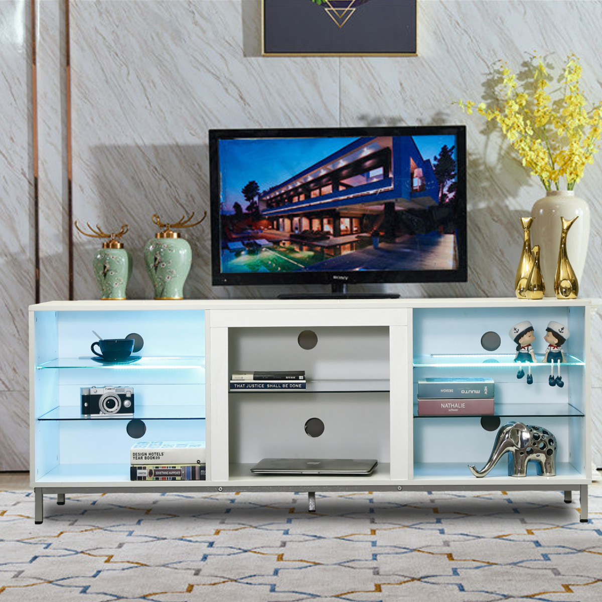✔[MULTIFUNCTION]-The TV cabinet comes complete with Blue color LED backlight, suits Below 70 inches TVS